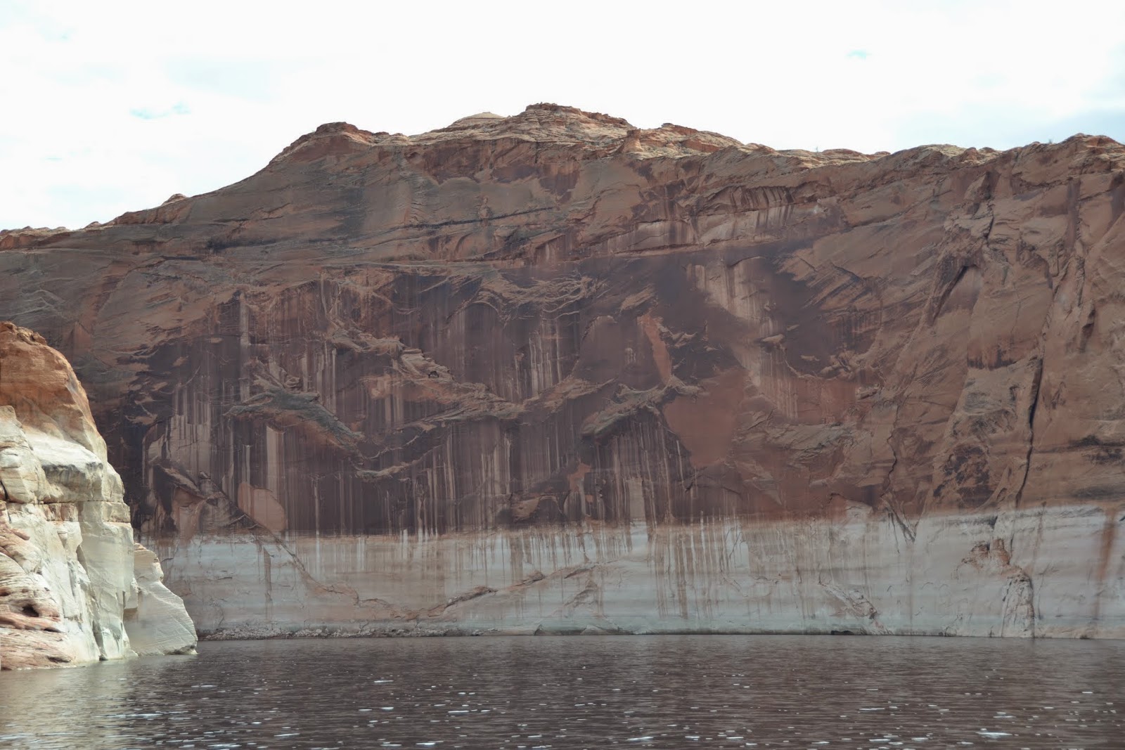 The clouds started forming as we left the canyon and headed for the Glen Canyon Dam. We enjoyed the view of the rock formations as seen from the water. The water was very clear and clean-looking. What a lovely couple of hours on the lake!